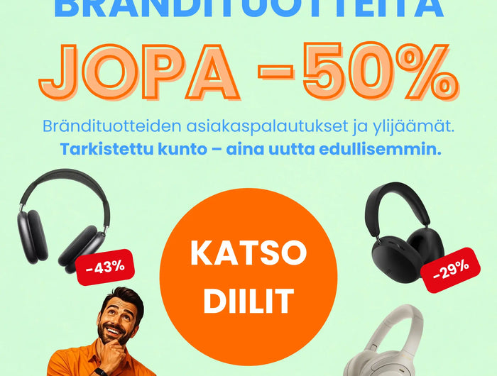 Myymme tarkistettuja brändituotteita, kuten asiakaspalautuksia, myymälänäytteitä ja varastoylijäämiä. Ne ovat usein lähes uudenveroisia, mutta selvästi edullisempia.